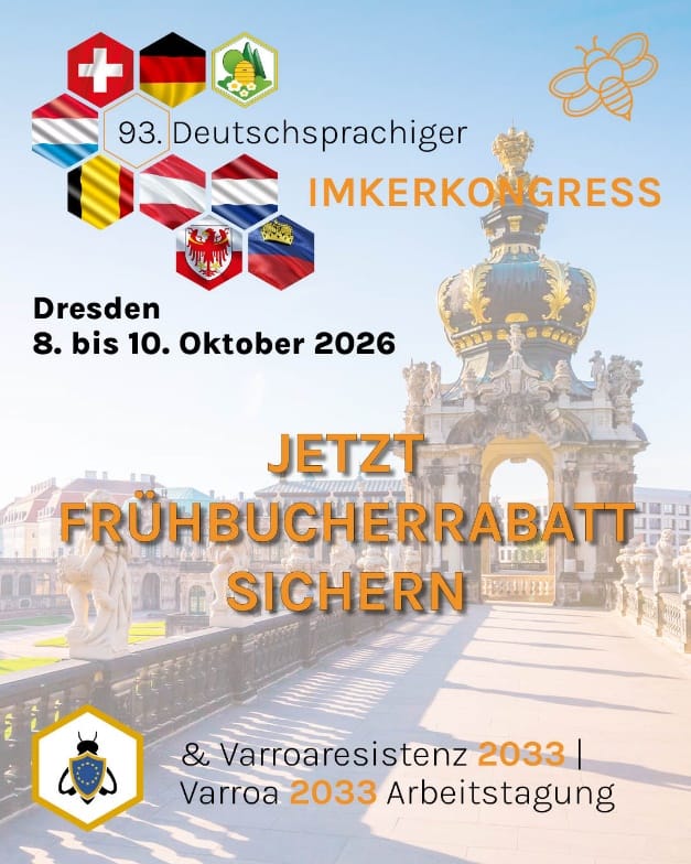 Bis 31.7.2026: Frühbucher-Rabatt für den 93. deutschsprachigen Imkerkongress in Dresden.