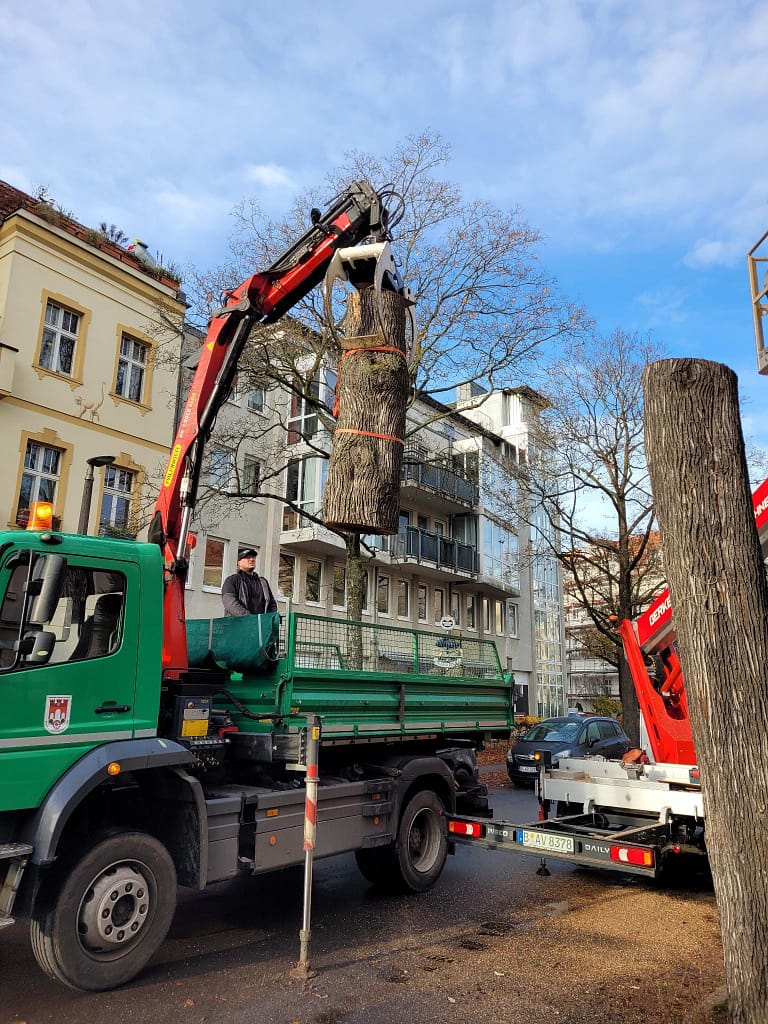 Im September 2025 wurden wir von mehreren Vereinsmitgliedern auf die geplante Fällung eines Straßenbaumes aufmerksam gemacht. Bewohnerinnen und Bewohner der betroffenen Straße berichteten, dass sich in einer Höhlung des Baumes ein Bienenvolk befinde. Unser Mitglied Wolfgang Baum nahm sich der Sache an, nahm Kontakt zum Grünflächenamt Pankow auf und unterstützte das Amt während der Maßnahme als erfahrener Imker.