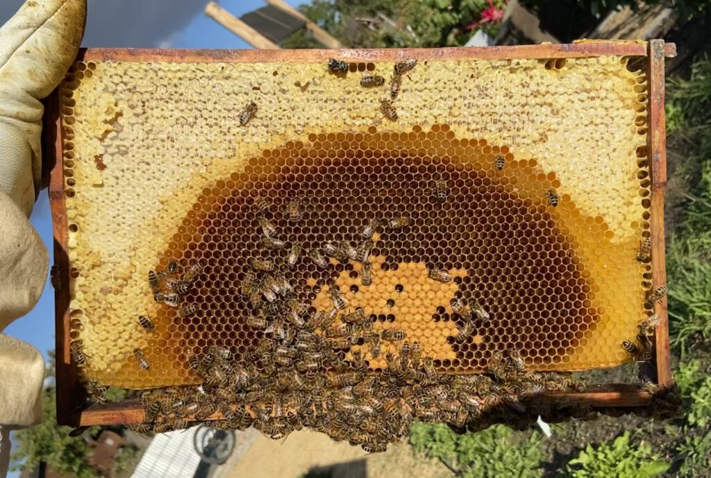 Im Juni 2021 erhielten wir schließlich unseren ersten Ableger eines Carnica-Volkes, einen Monat später kam ein weiterer Ableger hinzu. Wir imkern auf Langstroth 2/3-Rähmchen und haben damit sehr gute Erfahrungen gemacht, – insbesondere da die Zargen in der Honigsaisaon einfach weniger wiegen und besser zu händeln sind.